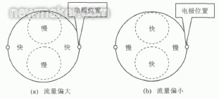 理想流場分布應(yīng)該呈軸對稱,中心稍大、四周稍慢,這時采用電磁流量計所測量的流量準確且穩(wěn)定(漿料噪聲的影響除外)。如果流場不夠理想,則測量管橫截面流速分布不均,可能引起流量測量輸出波動。
