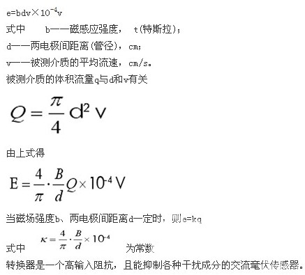 被測介質垂直于磁力線方向流動,因而在與介質流動和磁力線方向都垂直的方向上產生一感應電動勢e。