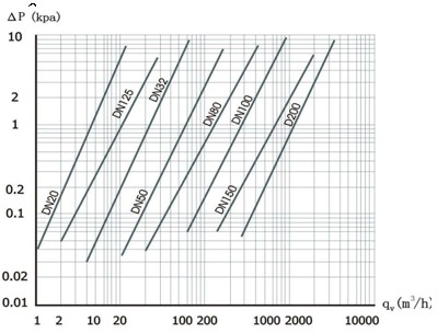 ΔP ¬——介質(zhì)為干空氣時(shí)流量計(jì)的壓力損失(KPa),其特性曲線(xiàn)見(jiàn)下圖